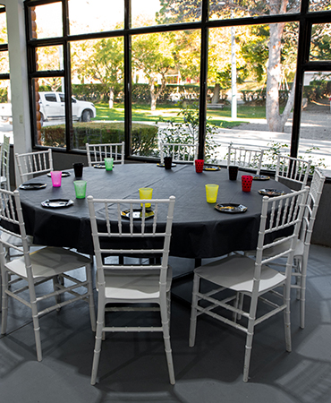 Mesas amplias, decoradas con manteles y sillas cómodas, crean el ambiente perfecto para que cada celebración sea alegre y personalizada. El salón, con techos altos y ventanales luminosos, combina amplitud con un estilo moderno y acogedor.