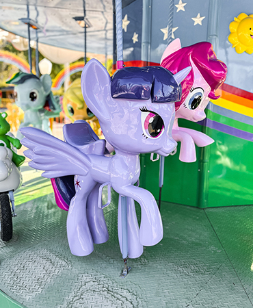 Plazas tradicionales y plaza adaptada (para niños con discapacidad) y Un carrusel con simpáticos personajes invita a vivir la magia de un parque de diversiones dentro del salón, un atractivo que encanta tanto a los chicos como a los adultos.
